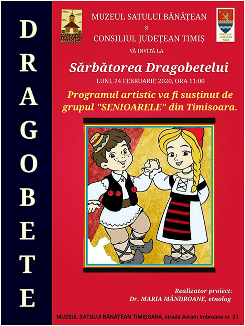 Sărbătoarea Dragobetelui, din 24 februarie, face parte din tradiţia românilor. Muzeul Național al Banatului sărbătorește într-un mod deosebit, prin spectacolul Entertainer Cvartet. La Bastion va avea loc și o manifestarea culturală: se va vorbi despre folclor și tradiții, dar se vor citi și poezii de dragoste.