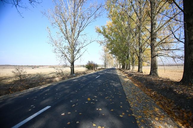 Tronson dintr-un drum judetean reabilitat din banii CJ Timis. Soseaua leaga Masloc de Charlottenburg
