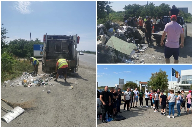FOTO. Când nu îi amendează pe cei care aruncă deșeuri, polițiștii locali fac voluntariat și le adună
