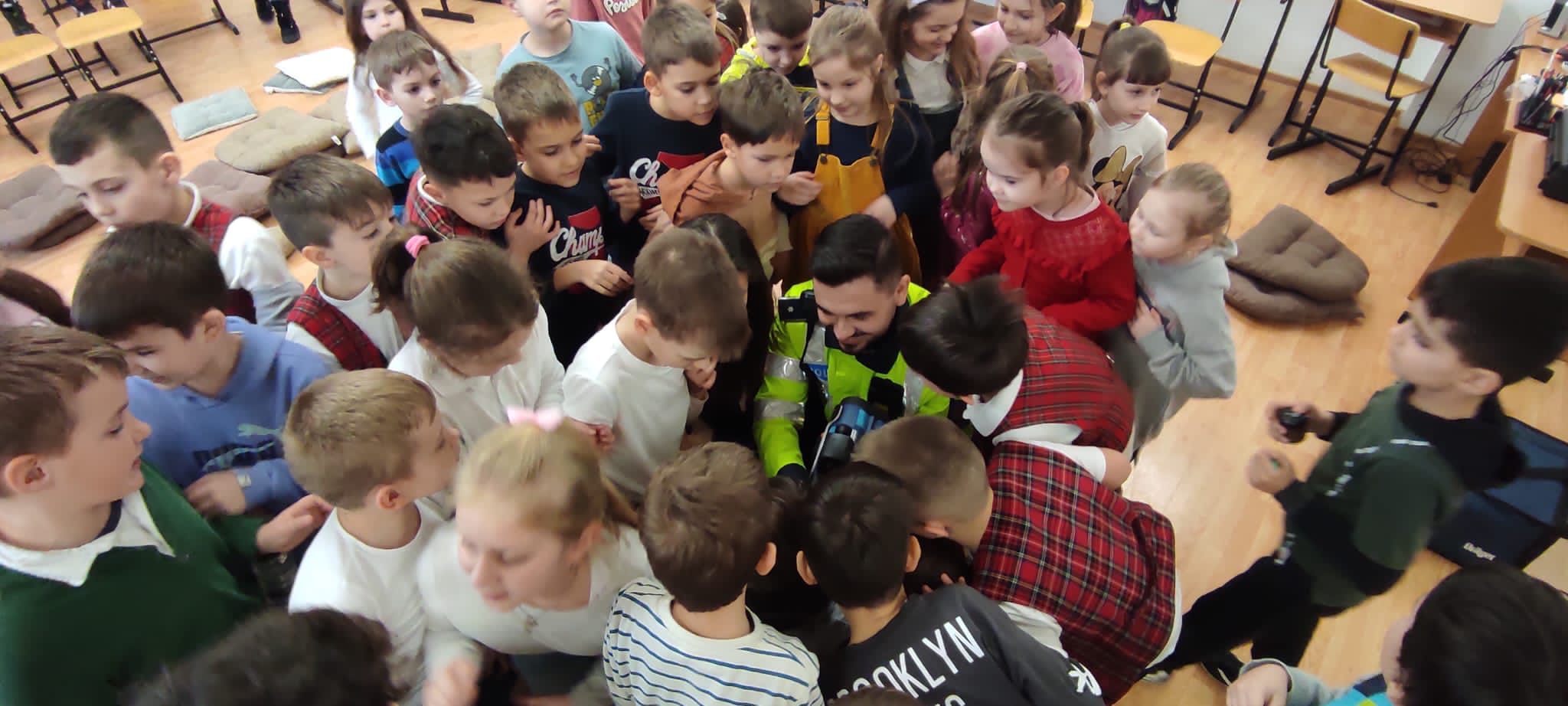 Vizite ale polițiștilor de la rutieră la două școli gimnaziale din Lugoj. Oamenii legii au mers acolo pentru a discuta cu elevii despre legislația rutieră și măsurile de siguranță în trafic. Cei mici au participat chiar și la o sesiune de întrebări și răspunsuri cu privire la activitatea de zi cu zi a polițiștilor.