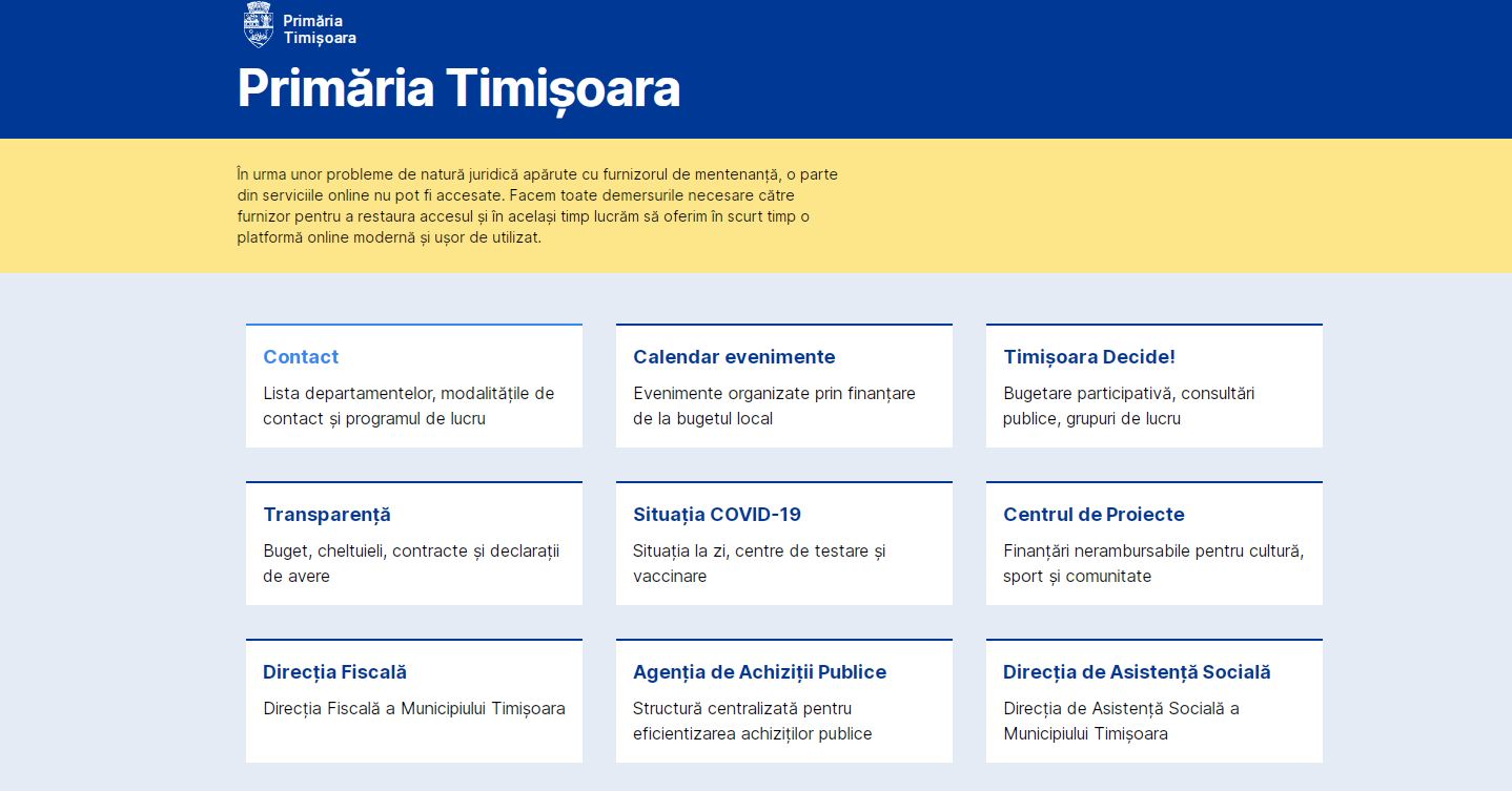 A trecut mai bine de o lună de când Primăria Timișoara caută un voluntar care să dezvolte platforma beta a instituției, dar încă nu a reușit să îl găsească. Între timp a mai încheiat un contract cu firma Expertissa, cea care se ocupă, de aproximativ 20 de ani, de site-ul PMT. Valoarea acestuia este de aproape 25.000 de euro.