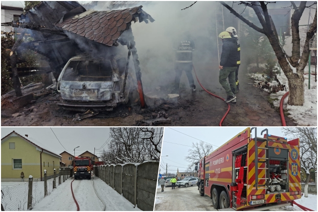 Incendiu la o mașină izbucnit vineri, în curtea unei case din Giroc. Trei persoane au avut nevoie de îngrijiri medicale. Un bărbat de 85 de ani a suferit arsuri ușoare la față, iar două femei s-au speriat. UPDATE. Bătrânul și o femeie, duși la spital