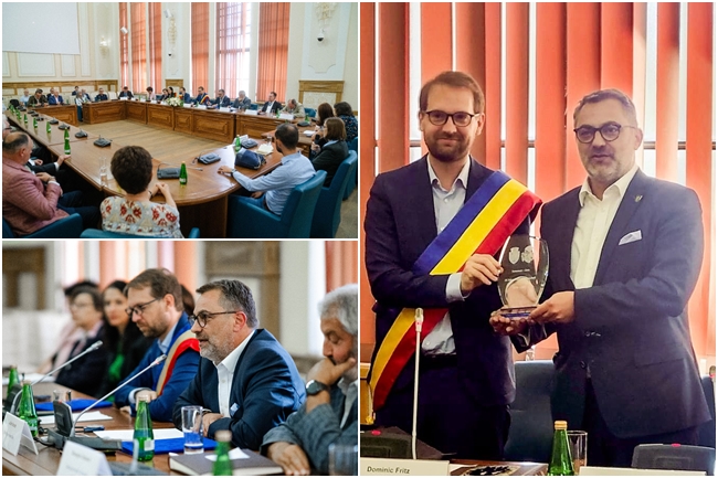 O delegație germană este zilele acestea la Timișoara cu ocazia evenimentelor dedicate celor 25 de ani de înfrățire cu Gera. După ce vineri, oficialii germani, cu Kathrin Göring-Eckart, vicepreședinta Bundestagului, în frunte, au participat la concertul „Schoenberg Gurre-Lieder”, sâmbătă dimineață aceștia au luat parte și la o ședință festivă.