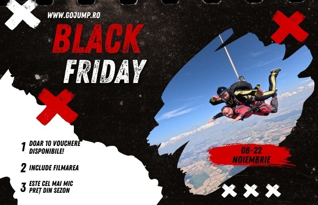 ADVERTORIAL. Ziua mult așteptată de iubitorii de adrenalină a sosit! Black Friday a început la GoJump, aducând reduceri de neegalat pentru cei care visează să experimenteze senzația unui salt în tandem din înălțimi amețitoare. Dacă ai visat să sari cu parașuta, să te eliberezi în aer și să simți libertatea deplină, acum este momentul să transformi acest vis în realitate la un preț de neratat!