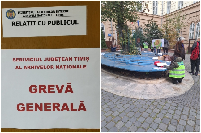 Angajații Arhivelor Naţionale ale României organizează luni, 4 noiembrie, între orele 12 și 14, o grevă de avertisment. Vor participa inclusiv angajați ai Serviciului Județean Timiș. Aceasta ar fi prima acțiune de acest fel din istoria de 192 de ani a instituției. Principalul motiv este „discriminarea salarială”, fapt care duce și la o lipsă permanentă de personal.