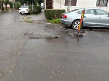 Imagini incredibile din Piața Traian. Muncitorii Societății de Drumuri Municipale, lăudați de primarul Nicolae Robu pentru că lucrează în zilele în care bugetarii au liber de la stat, au fost surprinși cum aruncă mai multe lopeți de bitum într-o groapă uriașă din Piața Traian. Vorbim despre craterul de pe str. Dacilor, stradă cu piatră cubică aflată într-o zonă istorică.