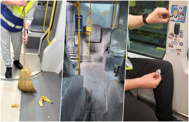 STPT atrage din nou atenția asupra mizeriei găsite zilnic în mijloacele de transport: coji de banană, ambalaje, gume lipite, stickere și mâzgăleli. Angajații curăță dimineața și seara fiecare tramvai și autobuz, iar societatea le cere călătorilor să semnaleze comportamentele care degradează vehiculele.