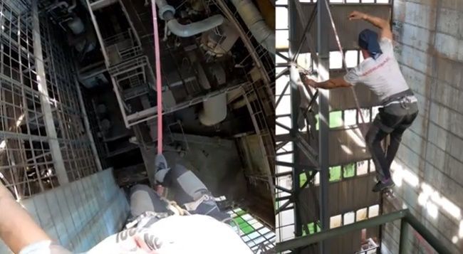 Bănățeanul Flaviu Cernescu a cucerit noi înălțimi. A fost într-o nouă aventură, iar ceea ce a făcut puteți vedea în clipul video. Cernescu, cunoscut pentru aventurile sale extreme, a mers, de data aceasta, pe o chingă, într-o hală industrială părăsită. A urcat la 44 de metri față de nivelul solului.