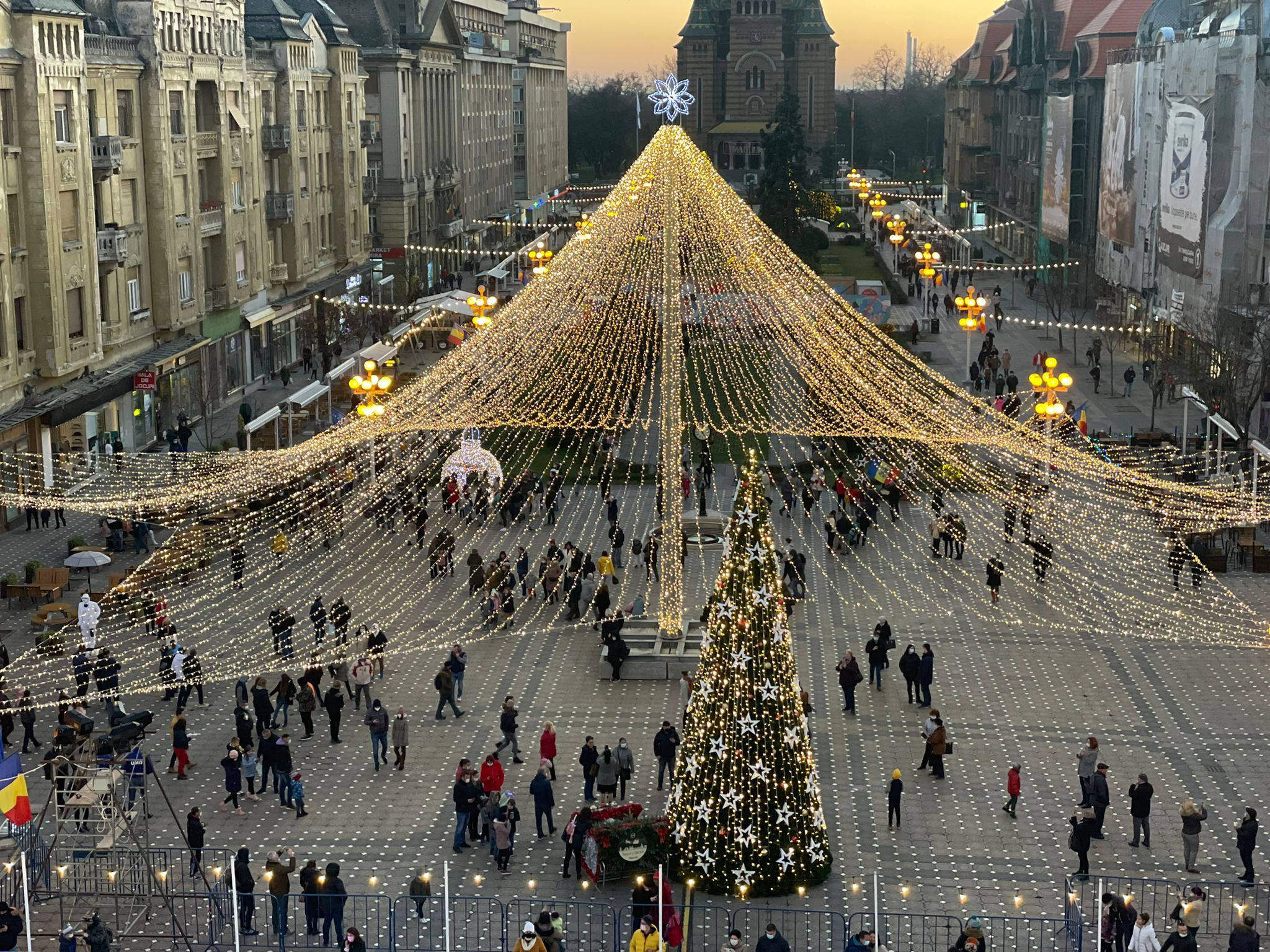 Timişorenii intră în spiritul Crăciunului. Luni seara, de Ziua Naţională a României, în centrul oraşului a fost aprins iluminatul festiv de sărbători şi s-a deschis oficial Târgul de Crăciun. Timişorenii, adunaţi în număr mare în Piaţa Victoriei, au dansat Hora Unirii şi i-au felicitat pe campionii de la RCM, care au câştigat Cupa României la rugby şi au adus trofeul acasă.