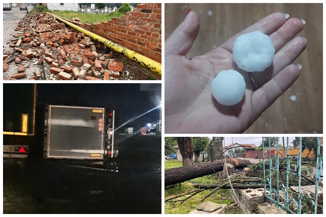 Furtuna de noaptea trecută a făcut ravagii în Timișoara, dar și în județ. Pompierii militari au fost chemați să intervină după ce vântul a răsturnat pur și simplu două tiruri, în Calea Șagului, iar șoferii au rămas blocați în interior. De asemenea, vijelia a luat pe sus acoperișuri, a doborât copaci, iar ploaia a inundat curți și gospodării.