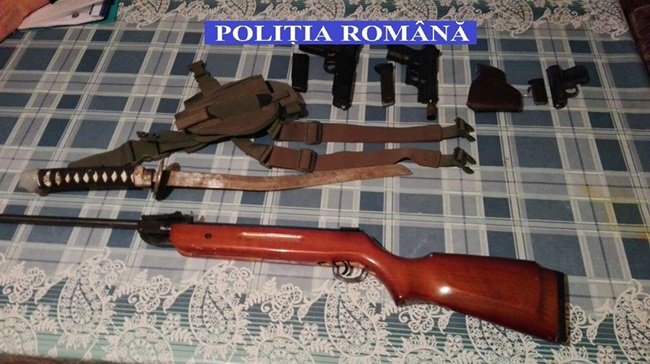 Percheziții, vineri dimineață, la Sânnicolau Mare. Oamenii legii din localitate au descins în locuința unor tineri suspectați de infracțiuni la regimul armelor și munițiilor. Polițiștii au descoperit în casa suspecților trei pistoale cu glonț, o armă cu aer comprimat și o armă albă.