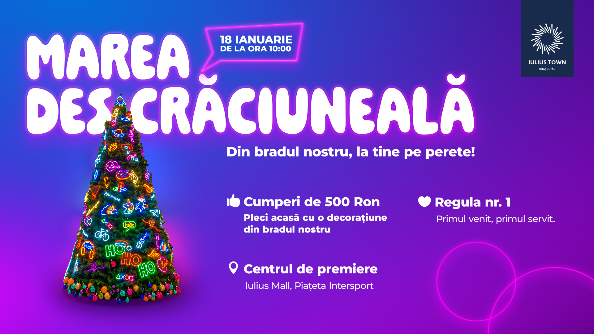 Despodobește bradul alături de noi, în Iulius Town! Sărbătorile s-au încheiat, iar acum este timpul pentru „Marea Descrăciuneală”. Pe 18 ianuarie 2025, elfii Moșului vor da jos decorațiunile led din brad, iar tu poți pleca acasă cu una dintre ele. Ornamentele led vor deveni cel mai cool decor pentru fotografiile tale de pe Instagram. Mai mult, pentru o postare trendy, ai nevoie și de ținute deosebite, așa că profită de Winter Sale, cu reduceri de până la 70% în Iulius Town!