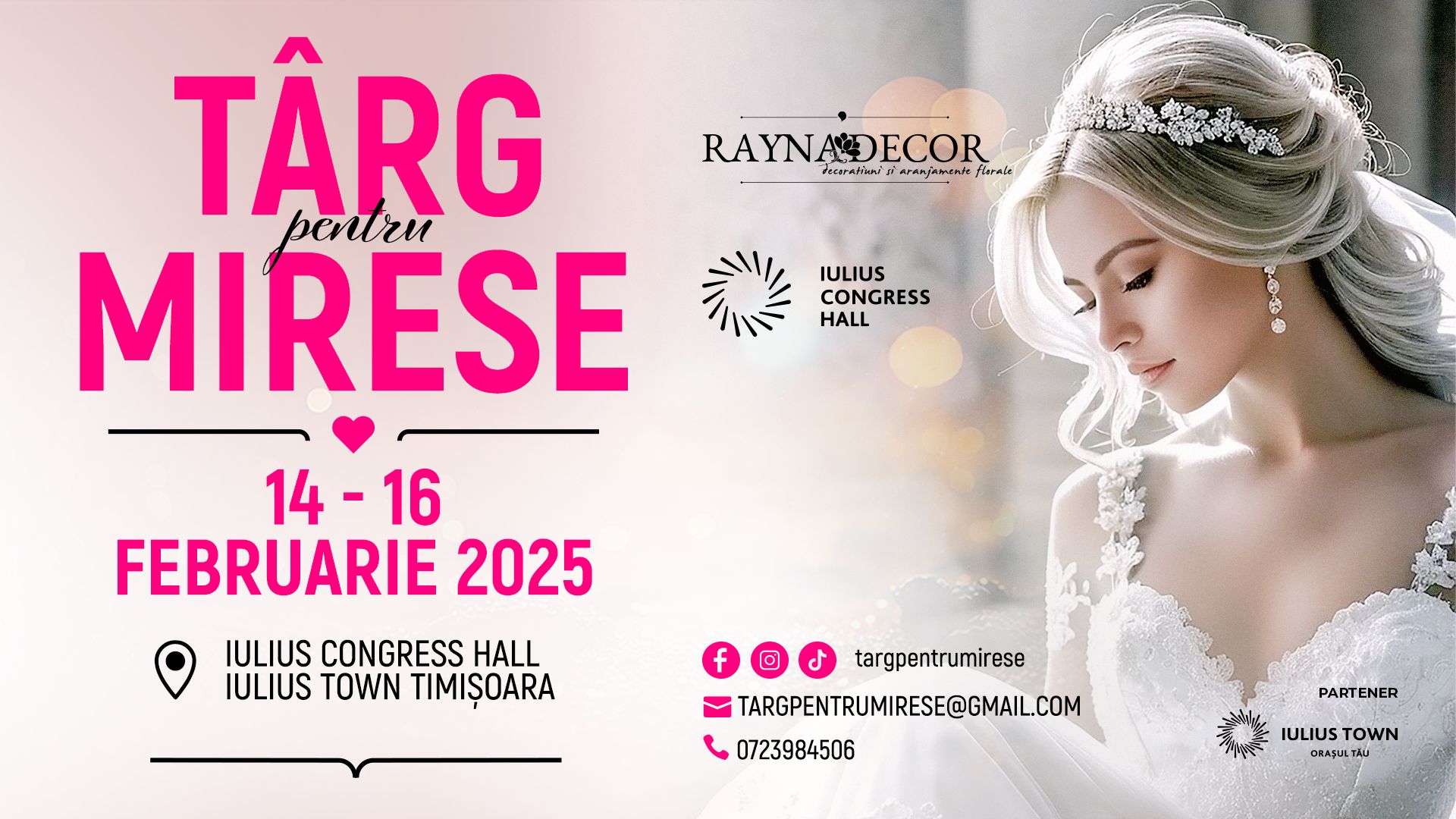 Sărbătoarea iubirii voastre începe acum! În perioada 14 – 16 februarie 2025, Iulius Congress Hall găzduiește Târgul pentru Mirese, locul ideal unde viitorii miri pot descoperi tot ce au nevoie pentru o nuntă de vis: rochia perfectă, costumul elegant, bijuteriile strălucitoare, decorul spectaculos, locația ideală și multe alte detalii care vor transforma ziua cea mare într-un moment memorabil. Mai mult, doamnele care vor să își elibereze garderoba au ocazia să își vândă rochia de mireasă în cadrul târgului.