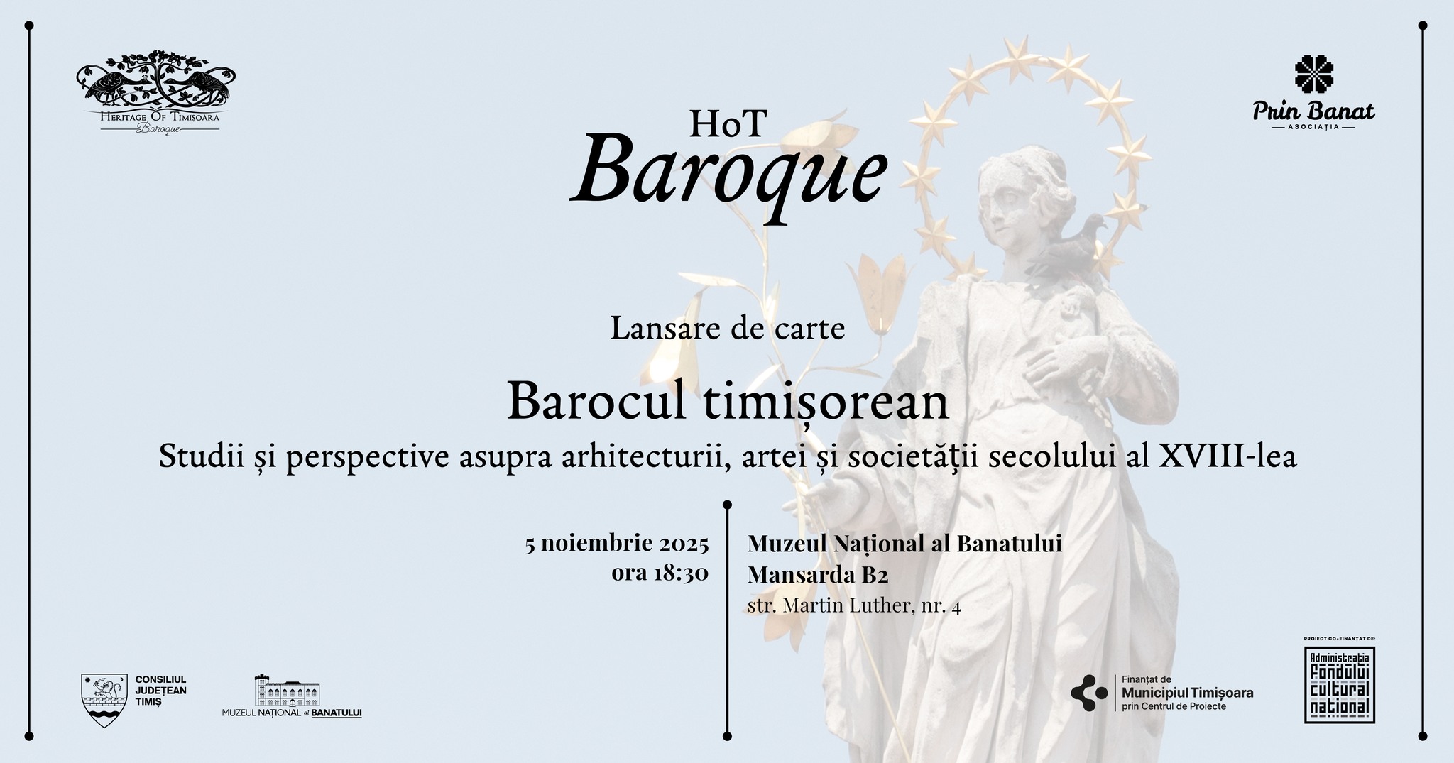 O nouă lucrare dedicată istoriei și patrimoniului Timișoarei va fi lansată miercuri, 5 noiembrie, la Muzeul Național al Banatului. Volumul „Barocul timișorean. Studii și perspective asupra arhitecturii, artei și societății secolului al XVIII-lea” reunește cercetări recente despre perioada ce a definit identitatea culturală și arhitecturală a orașului și a întregului Banat.
