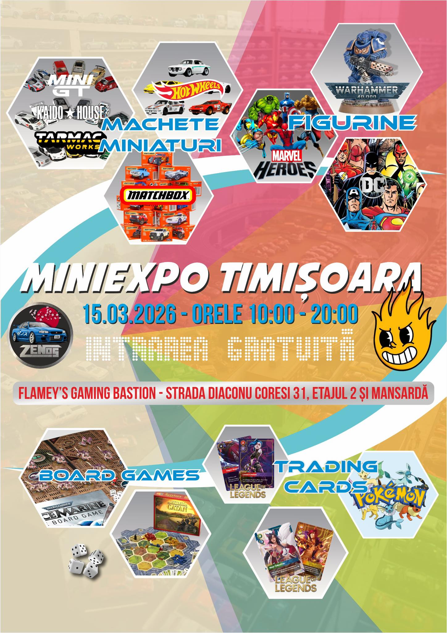 Pasionații de colecții, jocuri de societate și figurine sunt invitați duminică, 15 martie, la MiniExpo Timișoara, un eveniment dedicat comunității hobby din oraș. Manifestarea este organizată de Flamey’s și ZENOS și va avea loc între orele 10 și 20, la Flamey’s Gaming Bastion (str. Diaconu Coresi nr. 31).