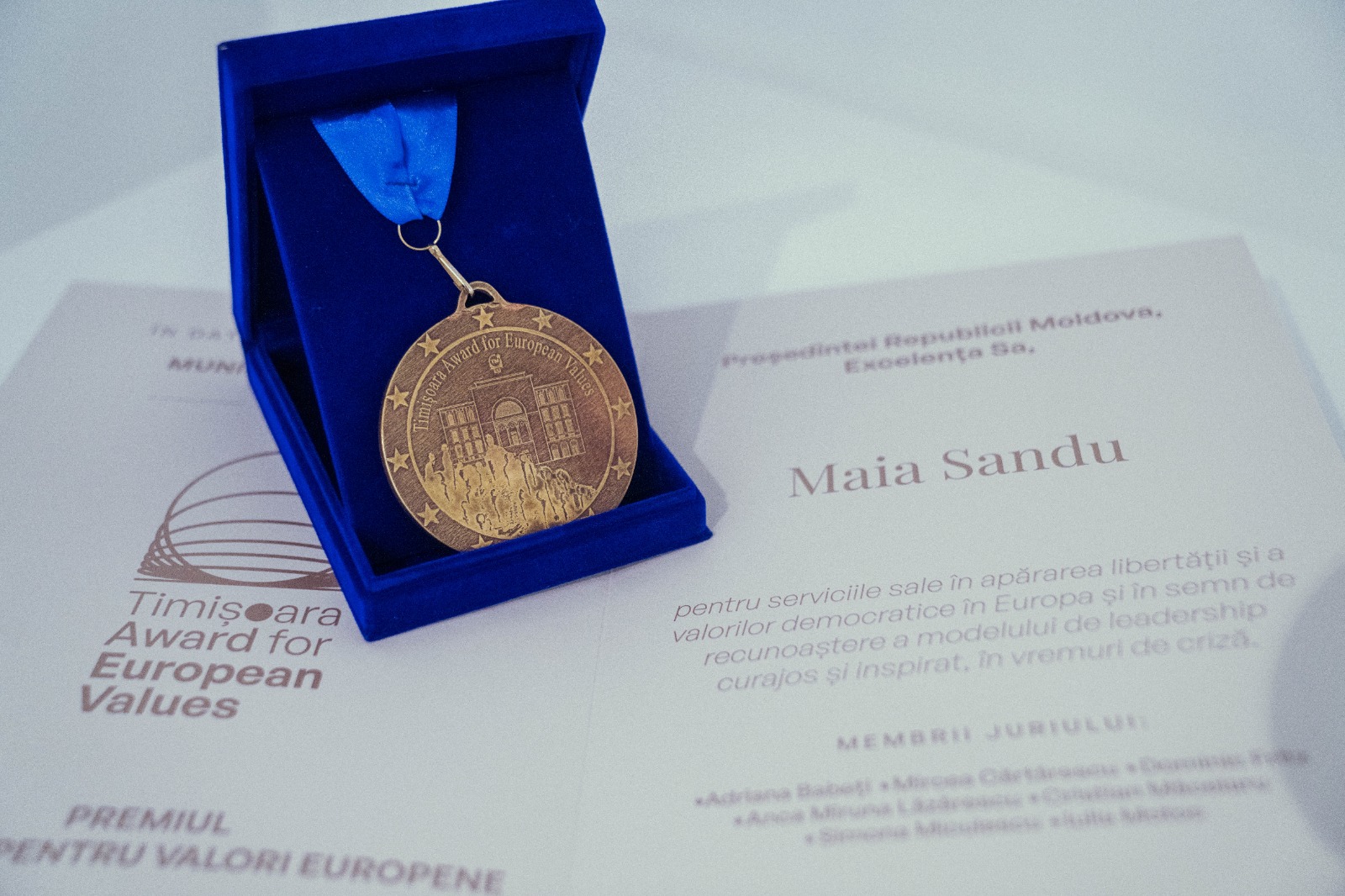 Maia Sandu a primit „Premiul Timișoara Pentru Valori Europene”, lucru care i-a atras critici șefei de stat din Republica Moldova, pentru că suma ar putea fi considerată „mită”. De acest premiu se amintea și într-o postare pe X a Ministerului Afacerilor Externe al Rusiei, a remarcat primarul Dominic Fritz.