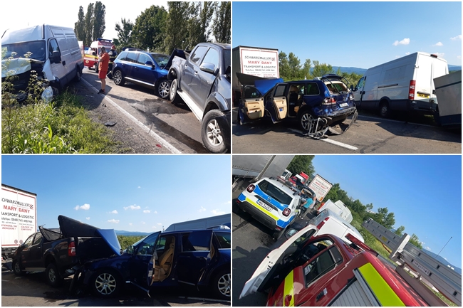 Accident după accident, duminică, pe autostrada Timișoara-Deva. La scurt timp după ce un șofer de tir a intrat în coloana de mașini care aștepta la coborârea Margina, iată că încă un accident cu victimă s-a petrecut în zonă. De aceastaă dată patru autoturisme s-au ciocnit în lanț după ce un șofer nu a păstrat nici el distanța regulamentară. Trei persoane, doi copii și o femeie gravidă, au fost rănite.