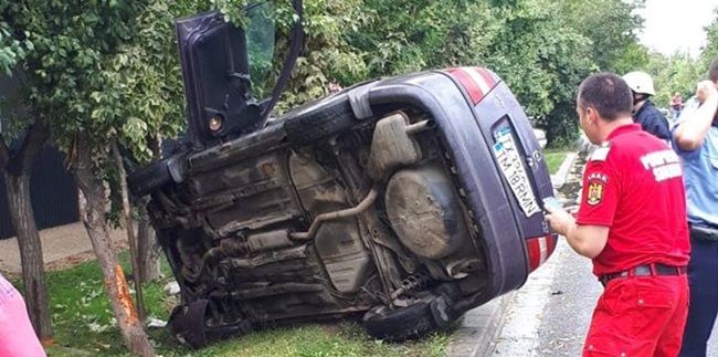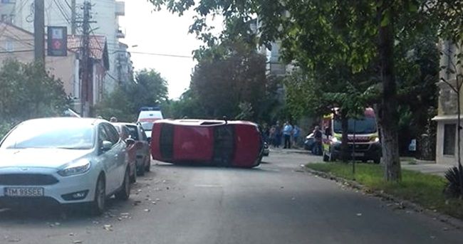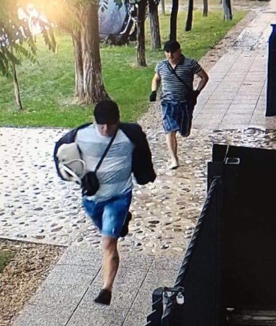 Cei doi indivizi căutați după ce au tâlhărit o femeie și au făcut accident au fost filmați de camerele de supraveghere montate pe o clădire din zonă. În timp ce fuge, unul dintre bărbați ține în mână poșeta femeii. Mașina cu care au încercat să scape cei doi aparține chiar unuia dintre ei.
