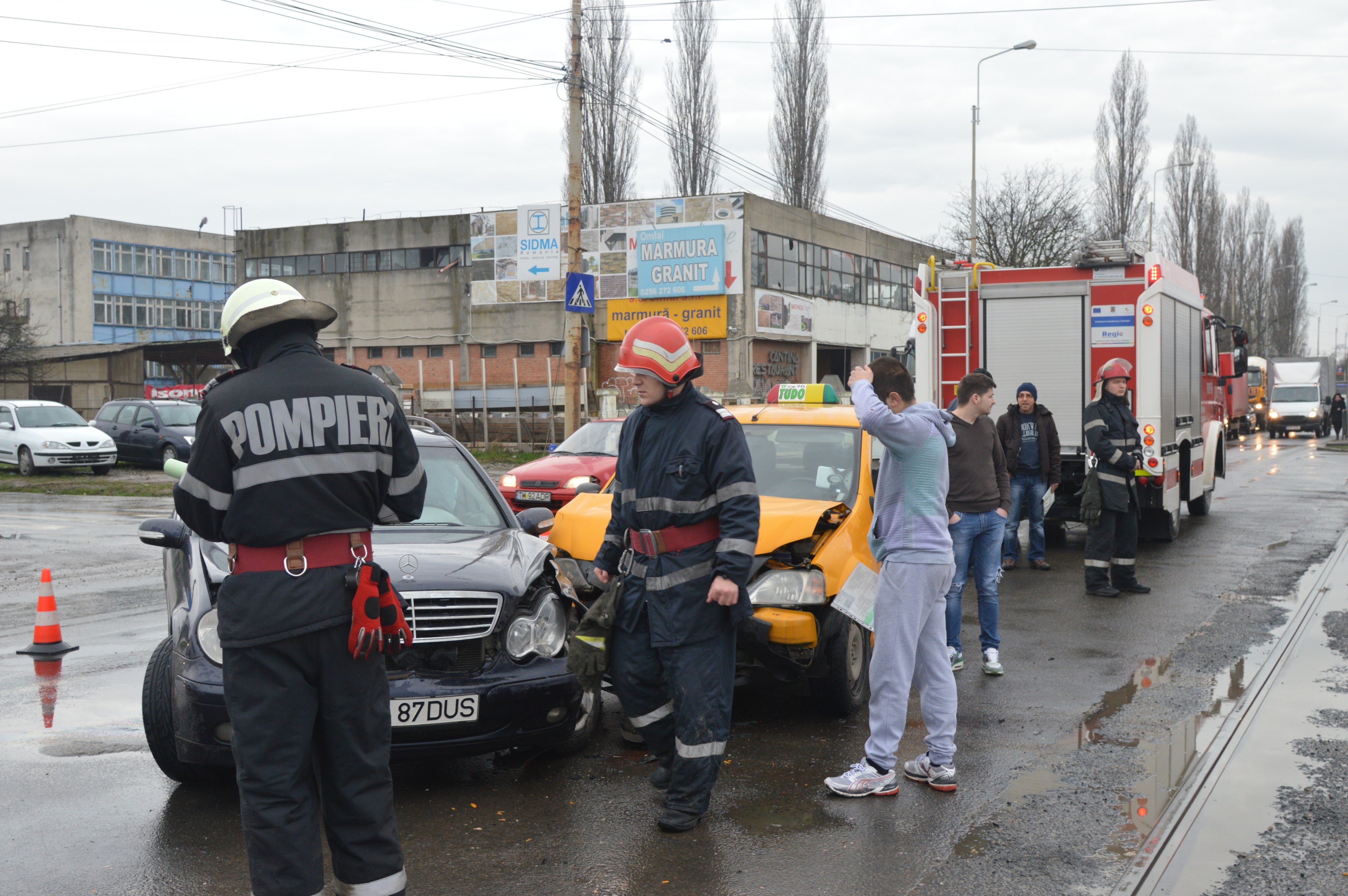 Accident de circulație într-o intersecție, în zona Telegrafului din Timișoara. O persoană a fost rănită, după ce un microbuz nu a acordat prioritate unui autoturism Mercedes și au intrat în coliziune. În urma impactului, alte două mașini parcate au fost avariate.