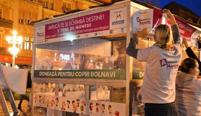 Ați văzut cumva o cutie de mari dimensiuni în centrul Timișoarei? Acolo se strâng monede pentru a se cumpăra medicamente copiilor bolnavi din Timișoara, cei care sunt internați la secția de hemato-oncologie. Reprezentantele Academiei Mămicilor Timișoara au instalat cutia care este gata să primească donații.