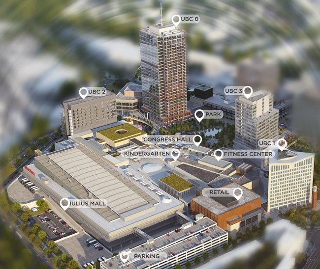 Timișoara, 23 mai 2019: Ansamblul Iulius Town Timișoara (denumit anterior Openville), primul proiect mixt din vestul ţării, va reprezenta polul regional de business, cu 100.000 mp de spații de birouri, și principala atracție de shopping și recreere, incluzând cea mai mare suprafață de retail din afara Bucureștiului, de 120.000 mp.  Cei peste 3.300 de angajați prezenți în clădirile de birouri din ansamblul Iulius Town au acces facil la numeroase servicii, magazine, cafenele și restaurante tematice, atât în Iulius Mall Timișoara, cât și în spațiile de retail amenajate la parterul clădirilor de birouri.