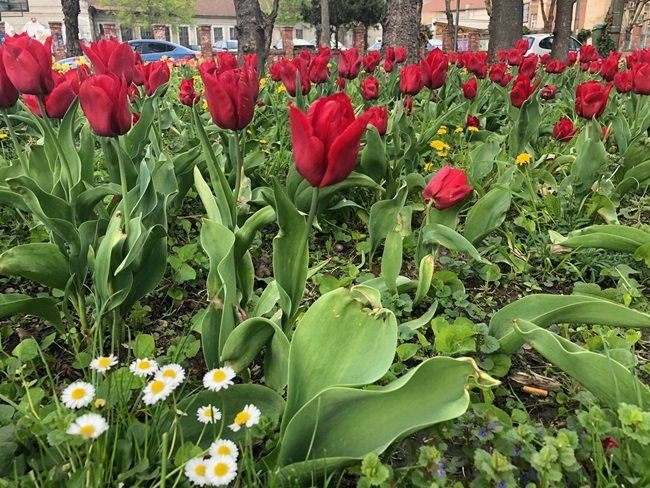 Lalele de toate culorile, inclusiv negre, ghiocei, zambile, narcise – un total de 109.300 de flori vor înflori în luna aprilie în Parcul Justiției din centrul Timișoarei, inaugurat marți de primarul Nicolae Robu. Este singurul parc din zona centrală a orașului în care se poate sta pe iarbă, susțin reprezentanții primăriei.