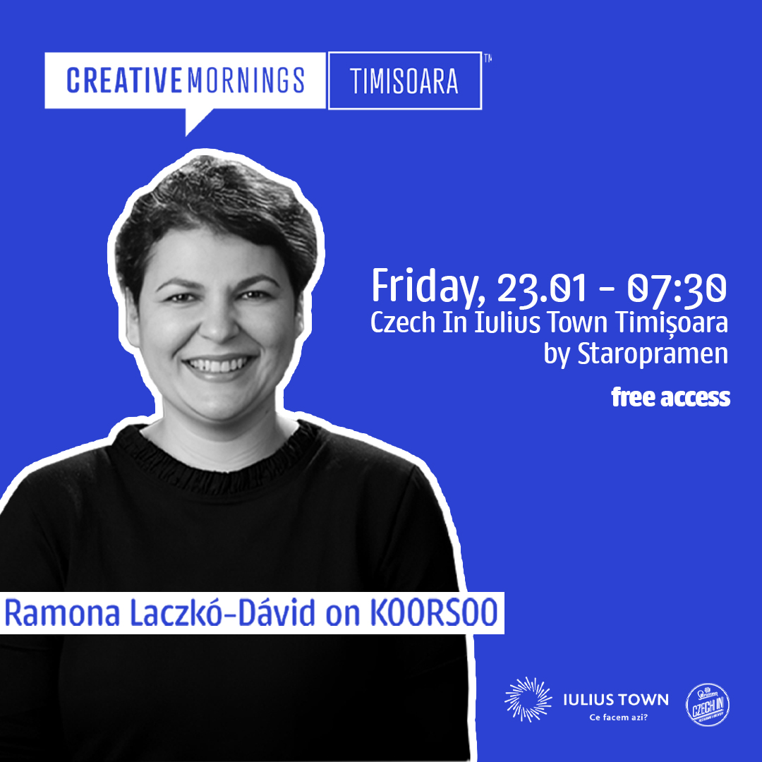 Czech In Iulius Town by Staropramen găzduiește prima ediție din 2026 a Creative Mornings Timișoara. Invitată specială este Ramona Laczkó-Dávid, cu peste zece ani de experiență în sectorul cultural internațional. Evenimentul aduce împreună profesioniști din diverse domenii pentru schimb de idei și inspirație.