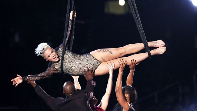După apariţia nimicitoare şi acrobatică de la premiile Grammy, în care cântăreaţa a interpretat „Glitter In The Air”, într-un costum Bob Mackie care mai mult dezgolea decât acoperea şi atârnată deasupra audienţei cu ajutorul unor panglici de mătase, iată că Pink îşi doreşte o pauză.