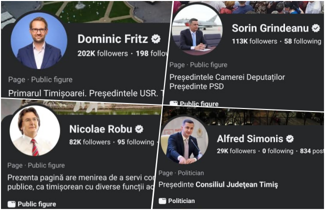 Dominic Fritz domină detașat rețelele sociale în rândul politicienilor din Timiș, cu sute de mii de urmăritori și impact major pe Facebook și TikTok. Fostul primar Nicolae Robu a coborât în afara podiumului, fiind depășit de Degianski, Grindeanu și Drulă.