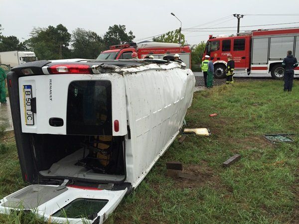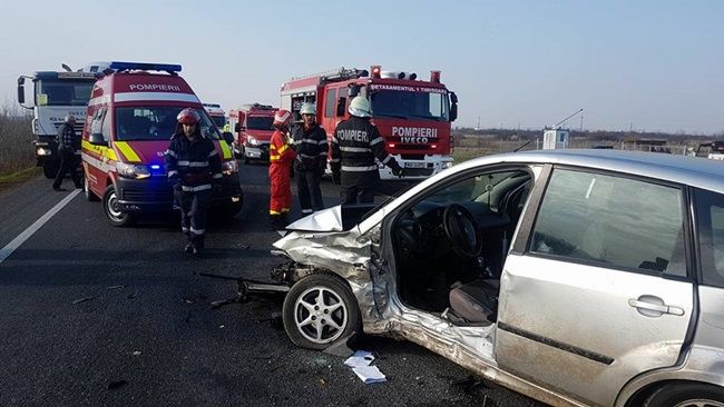 Accident de circulație, joi după-masă, pe șoseaua Timișoara - Remetea Mare. Două persoane au ajuns la spital după ce un autotren a intrat în coliziune cu un Ford Escort.