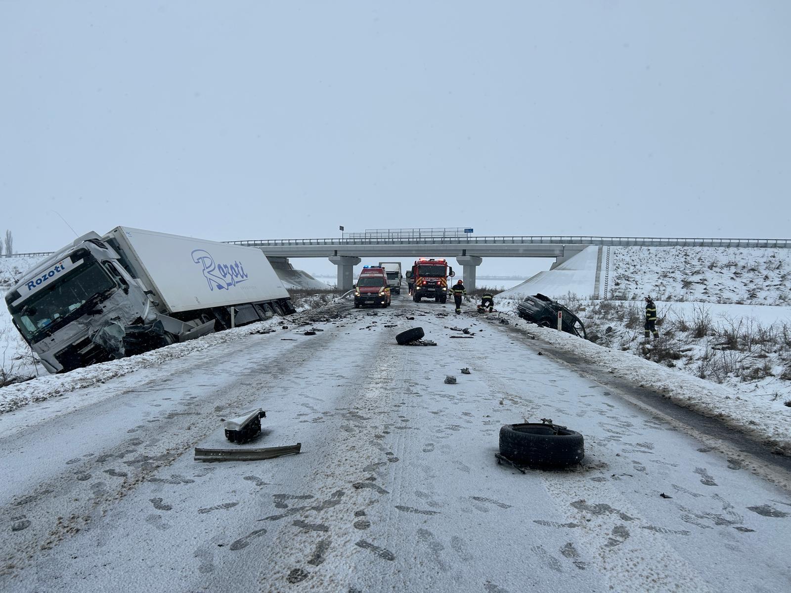 Accident pe centura Timișoarei. Șoferul unui camion primește îngrijiri medicale, iar cel al unui autoturism a rămas încarcerat după ce cele două vehicule s-au ciocnit între localitățile Șag și Giroc. UPDATE. Șoferul încarcerat a murit