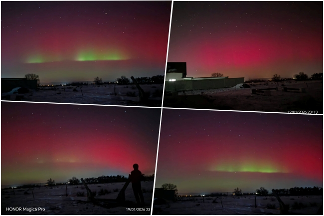 Aurora Boreală a fost vizibilă în noaptea de 19 spre 20 ianuarie 2026 la Colonia Mică, în județul Timiș, un fenomen rar pentru această zonă. Cerul a fost luminat de nuanțe de verde, roșu, albastru și violet. Evenimentul a fost generat de activitatea solară intensă.