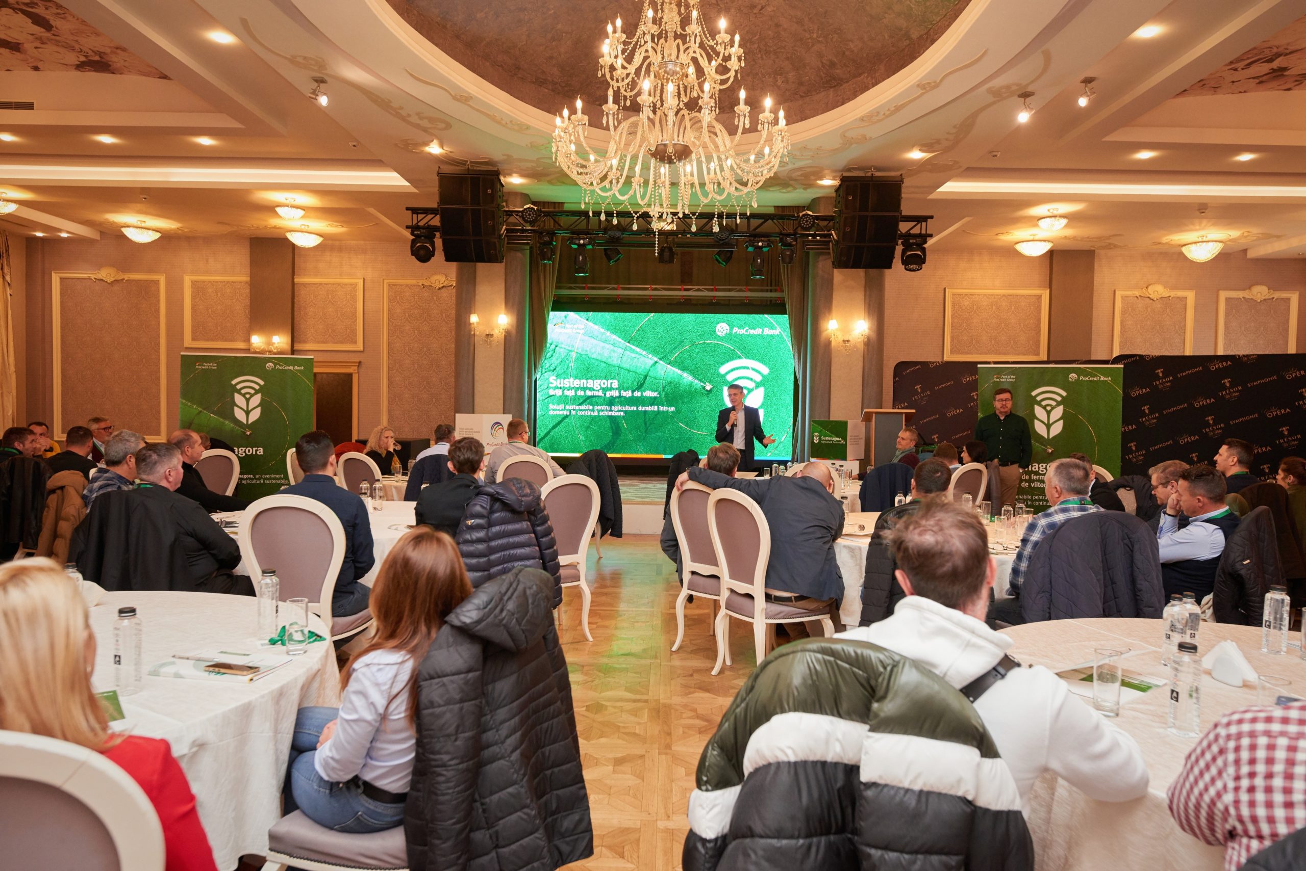 ADVERTORIAL. A doua ediție a conferinței „Sustenagora: Agricultură Sustenabilă” a avut loc în Timișoara, pe data de 14 noiembrie. Evenimentul organizat de ProCredit Bank a reunit peste 100 de fermieri, dealeri de echipamente si colaboratori din zona de vest a țării, alături de experți din industrie, într-un efort comun de a explora soluții inovatoare și sustenabile pentru provocările din sectorul agricol.