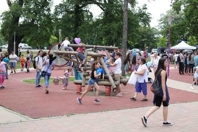 Plin de copii, părinți și bunici în Parcul Ion Creangă din Timișoara, de 1 iunie. Micuții, însoțiți de cei mari, au venit să se bucure de ziua lor. Au la dispoziție tot felul de atracții, de la tiroliană la patinoar, spectacole și multe alte lucruri. La principalele atracții s-au format adevărate cozi.