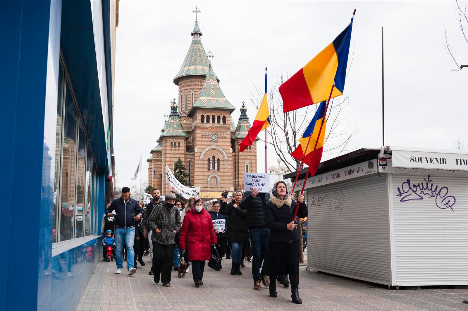 Este din nou protest împotriva carantinei și a măștilor de protecție, la Timișoara. Aproximativ 50 persoane s-au adunat în fața Prefecturii Timiș, iar apoi au plecat spre centrul orașului. UPDATE: manifestant luat pe sus de jandarmi. UPDATE 2. Aproximativ 400 de persoane au plecat din Piața Operei și merg prin oraș, pe Calea Torontalului. UPDATE3: protestatarii au mers din nou la casa primarului Dominic Fritz.