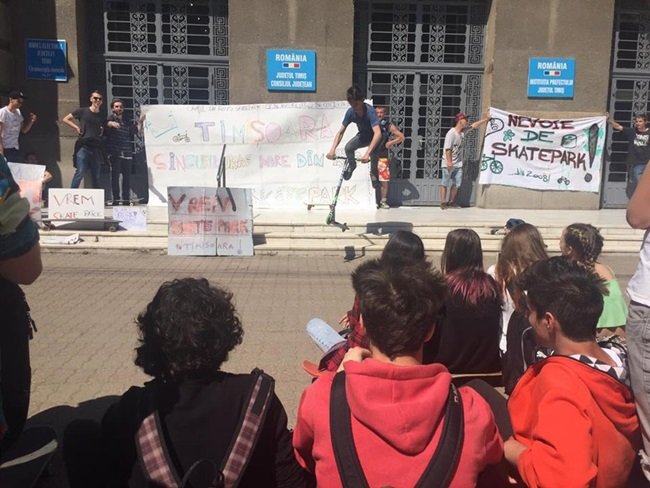 Pe biciclete, role sau skateboarduri, iubitorii de sporturi extreme din Timișoara s-au strâns, sâmbătă după-amiaza, în fața primăriei pentru a protesta față de faptul că orașul nu are încă un skatepark. De la sediul Primăriei Timișoara, instituția care ar fi trebuit să se ocupe de construcția acestui skatepark, manifestanții au fost trimiși la Prefectura Timiș, instituție care nu are nicio atribuție în domeniu, pentru că acolo au primit autorizație să își spună nemulțumirile.
