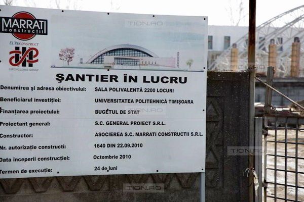 Trei ani nu sunt suficienți pentru construirea unei săli polivalente în Timișoara. Reprezentanții Universității Politehnica, care gestionează contractul cu firma constructoare, sunt nevoiți să organizeze o licitație nouă. Constructorul oricum era în insolvență, dar abia recent s-a decis rezilierea contractului.