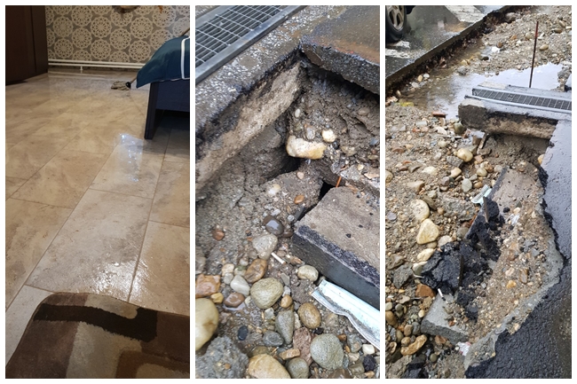 Un timișorean care locuiește într-un demisol din centrul Timișoarei s-a trezit cu apa de ploaie în casă. Omul se plânge că „îi plouă” în locuință din cauza lucrărilor de la trotuarele din zona centrală. A sunat și la primărie, de unde i s-a spus că „Asta este, afară plouă!”. În cele din urmă a pus mâna pe lopată.