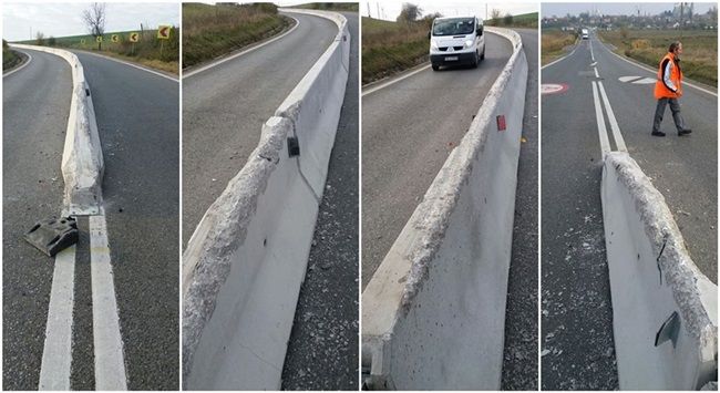 Angajații de la Drumuri au fost nevoiți să înlocuiască semnalizarea de la începutul unei zone unde în urmă cu doar câteva zile au fost montate separatoare de trafic, după ce acolo a avut loc un accident. Probabil că șoferii nu sunt încă obișnuiți cu noile „instalații”, cei de la DRDP Timișoara recomandă prudență în circulația rutieră.