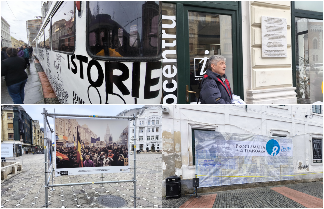La 35 de ani de la momentul în care Proclamația de la Timișoara era citită de la balconului Operei Naționale, Societatea Timișoara organizează, împreună cu Casa de Cultură, mai multe evenimente. Marți dimineață, a fost lansat tramvaiul însemnat de artistul Dan Perjovschi, dar a fost și dezvelită o plăcuță comemorativă amplasată pe fațada Operei Naționale.