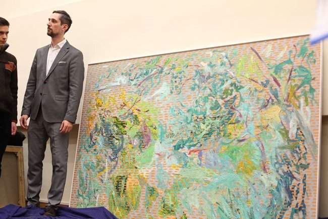 Tablou semnat Sorin Scurtulescu – donatie pentru Spitalul Judetean Timisoara, la serbarea de Craciun