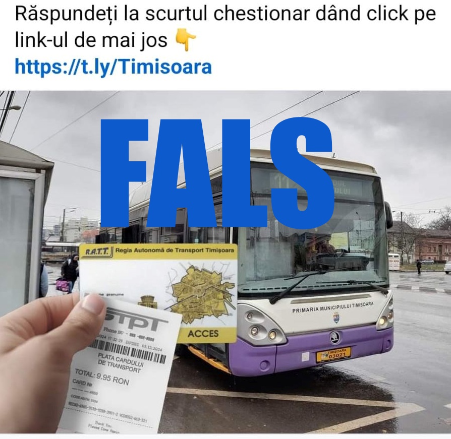 Societatea de Transport Public Timișoara (STPT) avertizează din nou călătorii cu privire la înșelătoriile online care circulă pe rețelele sociale. De data aceasta, o pagină de Facebook scrie că Primăria Timișoara ar fi lansat o inițiativă verde prin care oamenii pot obține carduri gratuite de călătorie. Desigur, totul este o minciună.