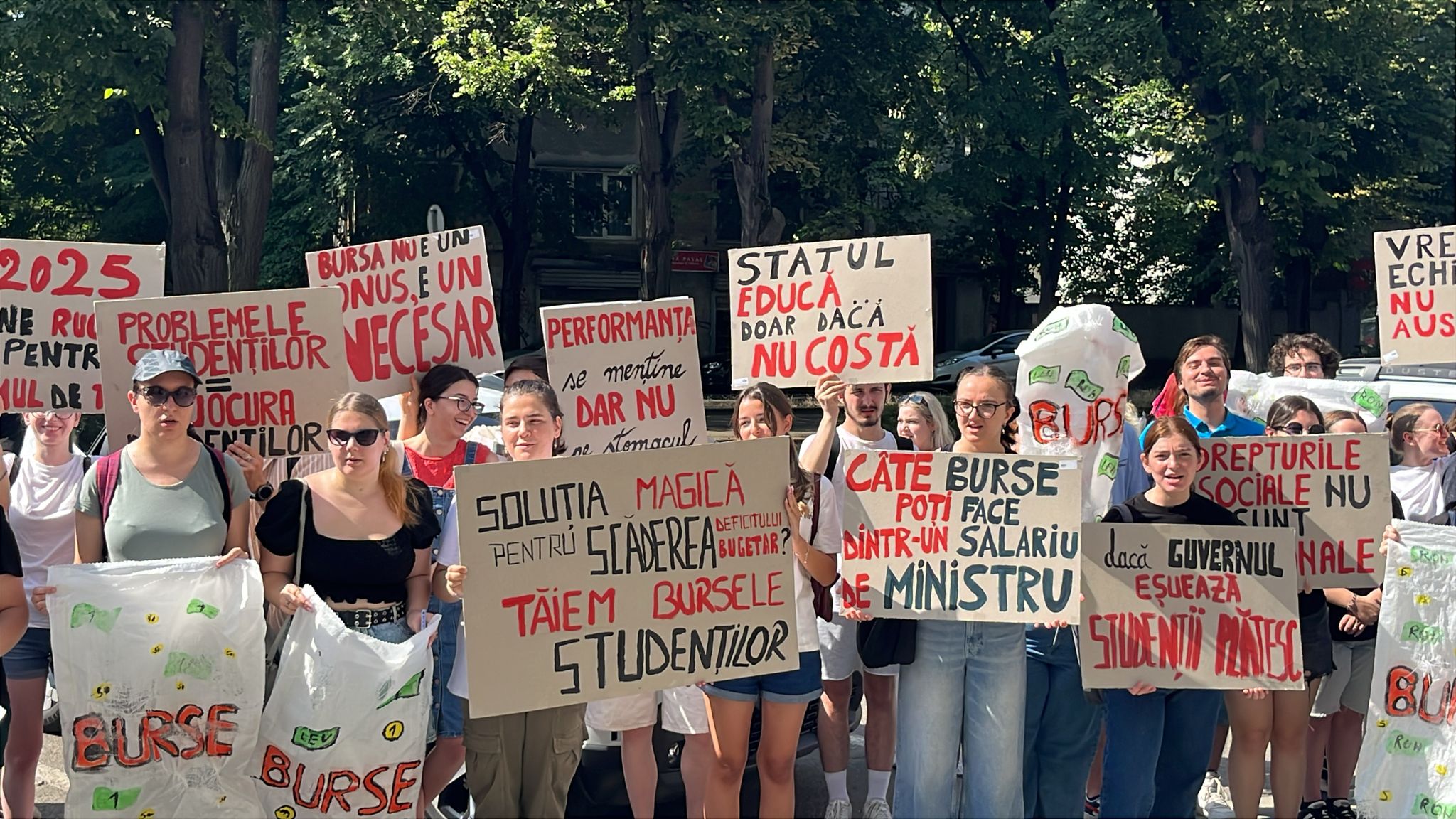 Zeci de studenți s-au adunat astăzi, începând cu ora 10, în fața Prefecturii din Timișoara, pentru a protesta față de propunerea Guvernului de a modifica modul de calcul al fondului de burse studențești. Acțiunea face parte dintr-un val de manifestații organizate simultan în mai multe centre universitare din țară, la inițiativa Alianței Naționale a Organizațiilor Studențești din România (ANOSR).
