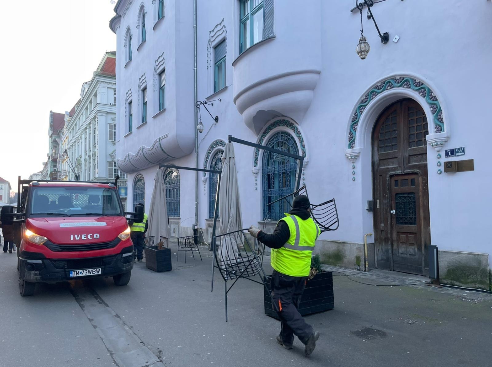 Trei terase din zona centrală a Timișoara – din Piața Libertății, de pe Eugeniu de Savoya și de pe Gheorghe Lazăr – au fost desființate de municipalitate, după ce funcționau fără autorizație și fără plata taxelor pentru domeniul public. Bunurile au fost ridicate, iar costurile vor fi imputate comercianților.