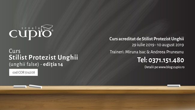 ADVERTORIAL. Una dintre cele mai căutate și bine plătite meserii din industria frumuseții este cea de stilist protezist unghii. Dacă ești pasionată de acest domeniu și vrei să obții o calificare acreditată la nivel european, nu mai sta pe gânduri! Înscrie-te la o nouă ediție a Cursului de Stilist Protezist Unghii organizat de Școala Cupio! Află de la cei mai buni traineri cum să devii un tehnician de unghii profesionist!
