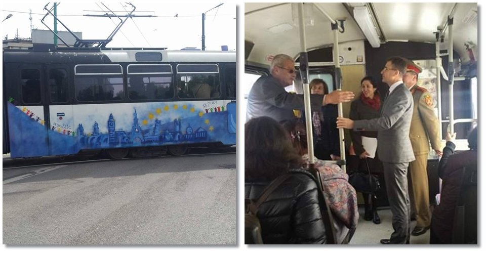 Tramvaiul decorat special de Ziua Europei de studenții Facultății de Arte și Design Timișoara a plecat prin urbe în sunet de fanfară. Mijlocul de transport, care circulă gratuit marți, 9 mai, este numai una dintre componentele manifestărilor organizate de Ziua Europei în oraș. Pe parcursul zilei au loc mai multe manifestări, totul culminând cu concerte în Piața Unirii, unde vor urca pe scenă Direcția 5, Feli Donose și Alina Eremia.