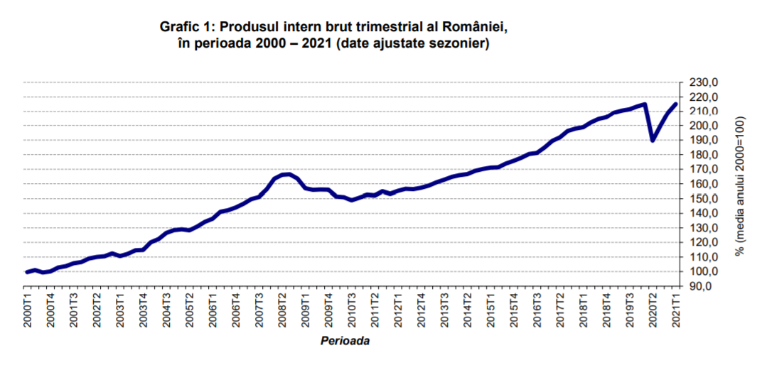 Datele publicate marți, 18 mai, de Institutul Național de Statistică arată că Produsul Intern Brut a crescut cu 2,8% pe serie ajustată, față de trimestrul anterior. Comparativ cu același trimestru din anul 2020, PIB-ul nu a înregistrat nici o modificare.