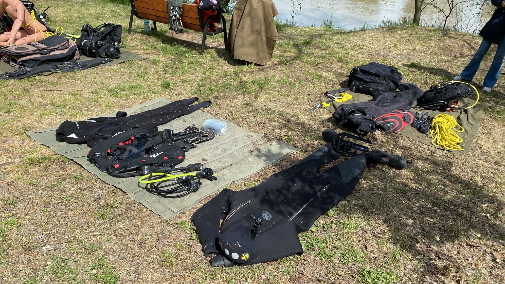 Scafandrii timișeni efectuează o simulare cu manechin, în proximitatea locului unde barca s-a răsturnat.