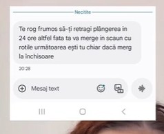 Mesajul se încheie cu o avertizare adresată tatălui și partenerei acestuia, pe care o consideră implicată în amenințări, afirmând că este dispusă să le facă publice identitatea dacă nu încetează hărțuirea.
