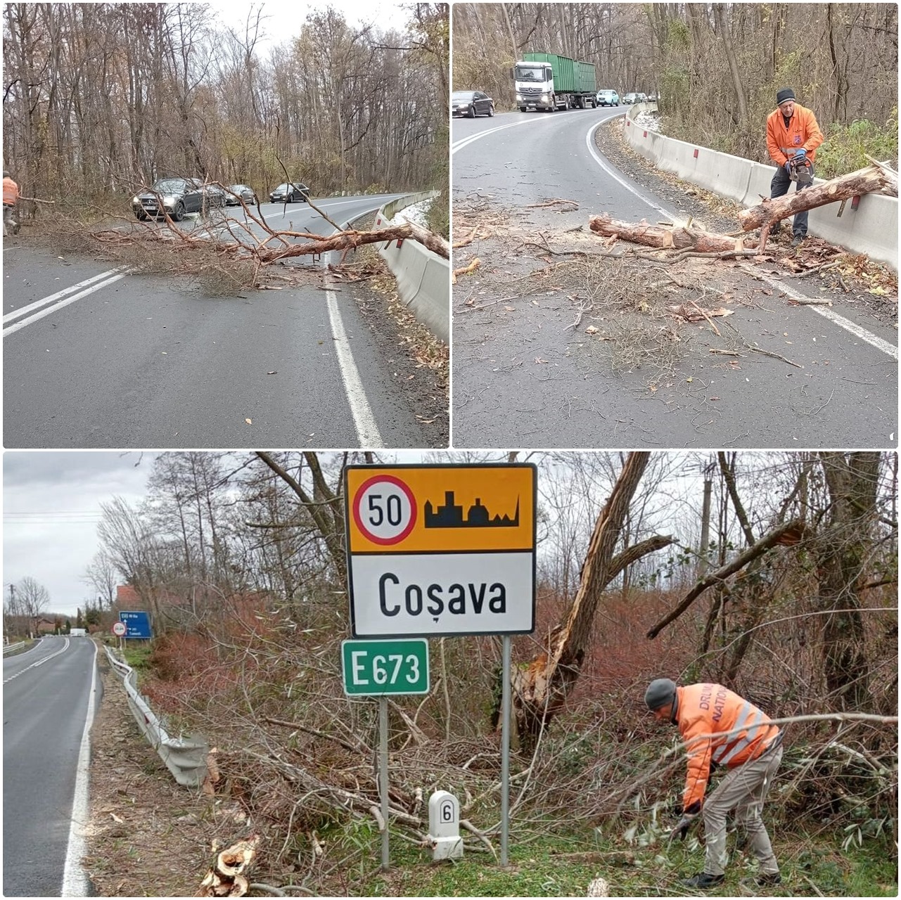 În plus, pe DN 68A Coșava – Coșevița se intervine pentru eliberarea carosabilului de arbori și crengi rupte de vânt.